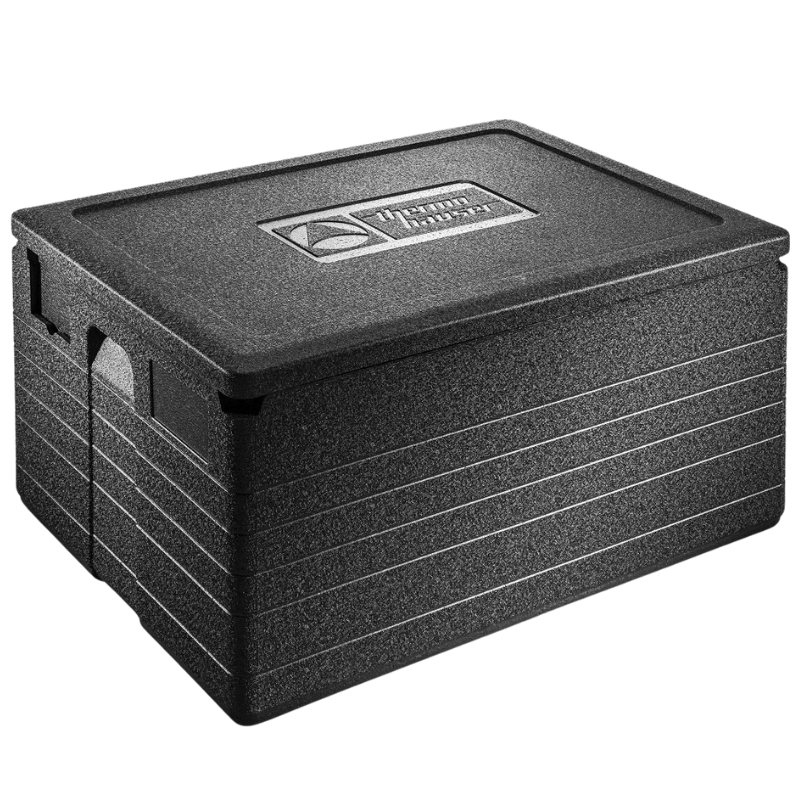 Ergonomiczny pojemnik termoizolacyjny do transportu żywności w kontrolowanych warunkach. Opracowany specjalnie do przewożenia profesjonalnych tac i blach gastronomicznych o wymiarach: (długość) 60 cm x (Szerokość) 40 cm. Obowiązujące przepisy dotyczące bezpieczeństwa żywności i przestrzegania łańcucha chłodniczego podczas transportu stają się coraz bardziej rygorystyczne. Gastronomiczne pojemniki termoizolacyjne pozwalają na spełnienie wymagających przepisów dotyczących transportu produktów spożywczych. Doskonale sprawdzają się do transportu wewnętrznego, tymczasowego przechowywania oraz dostaw do oddziałów zewnętrznych i klientów. Przy prawidłowym zastosowaniu pojemniki pozwalają na zagwarantowanie bezpieczeństwa transportowanej żywności.