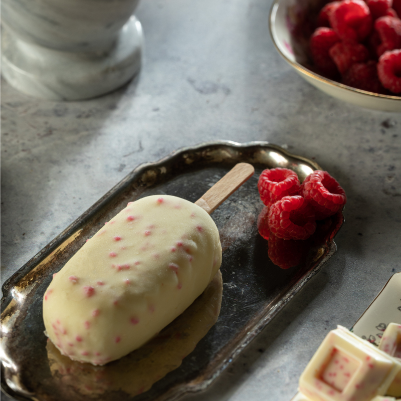 Gotowa do użycia stracciatella o smaku białej czekolady z malinowymi kryształkami cukru. Do urozmaicania i oblewania lodów oraz deserów mrożonych. Dekoracyjny i chrupiący efekt!