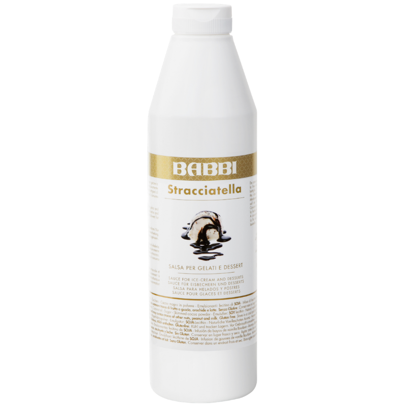 COPERTURA FINE - BOTTIGLIA - to gotowa do użycia polewa czekoladowa (na bazie oleju kokosowego i odtłuszczonego kakao) przeznaczona do produkcji lodów typu stracciatella. Zapakowana w wygodną butelkę, która ułatwia dozowanie produktu. Produkt wymaga podgrzania (w kąpieli wodnej lub kuchence mikrofalowej) przed użyciem - w celu upłynnienia. Dodatkowo przed użyciem produkt należy dokładnie wymieszać (wstrząsnąć). Dodatek polewy pozwala uzyskać drobne kawałeczki chrupiącej czekolady w lodach stracciatella, a także semifreddo i mrożonych deserach. Polewa doskonale sprawdzi się także do lodów wegańskich.