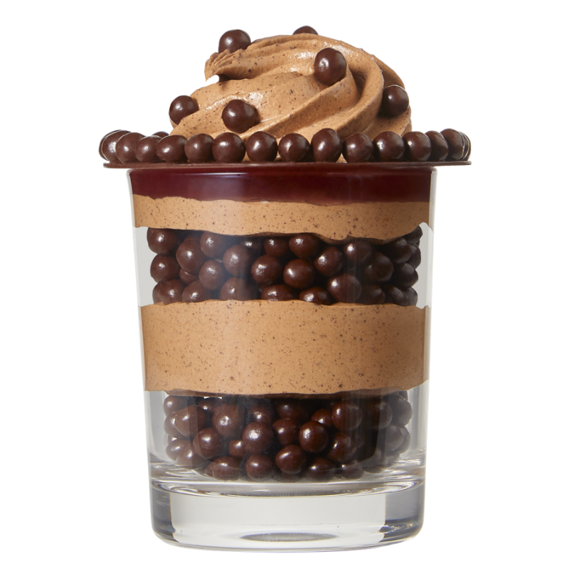 Drobne kuleczki zbożowe w polewie czekoladowej do dekoracji cukierniczych. Chrupiące wnętrze otoczone ciemną czekoladą. Dodane do kremów, musów lub lodów, nadają im chrupiącą teksturę z czekoladowym akcentem. Czekoladowa otoczka dodatkowo chroni chrupiące wnętrze przed rozmiękaniem, dzięki czemu pozostają cały czas chrupiące. Posypka dekoracyjna z charakterystycznym efektem chrupania.