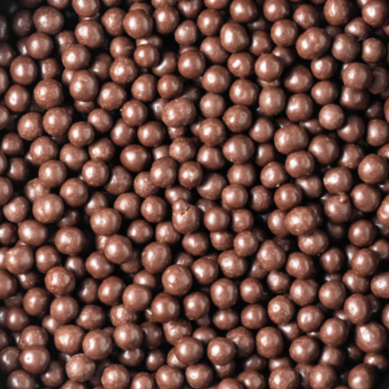 Chrupiące kuleczki ryżowe w polewie z mlecznej czekolady. Chrupiąca posypka dekoracyjna do urozmaicania i ozdabiania wypieków i deserów. Chrupiące kuleczki czekoladowe do dekoracji lodów, tabliczek czekolady, pralin, trufli, lizaków z ciasta, nowoczesnych monoporcji i wielu innych zastosowań.