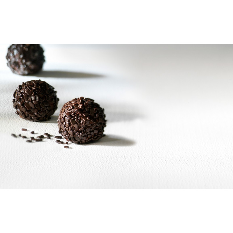 Niewielkie, nieregularne, lśniące i chrupiące płatki o intensywnym smaku ciemnej czekolady.