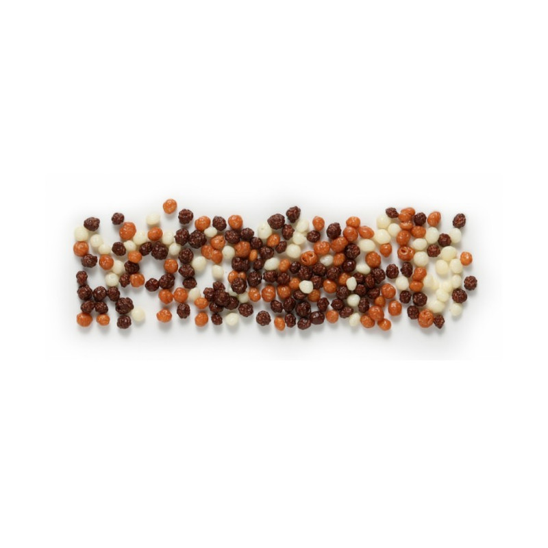Mieszanka miniaturowych perełek w ciemnej, mlecznej i białej czekoladzie, z chrupkim wnętrzem z herbatnika.