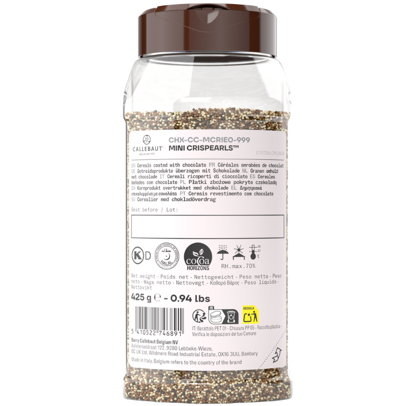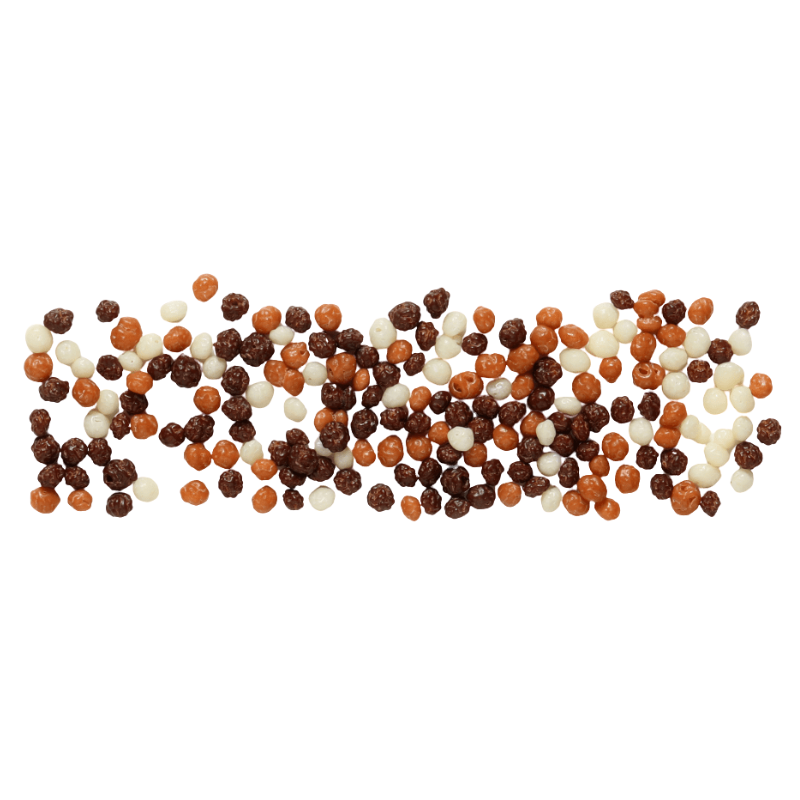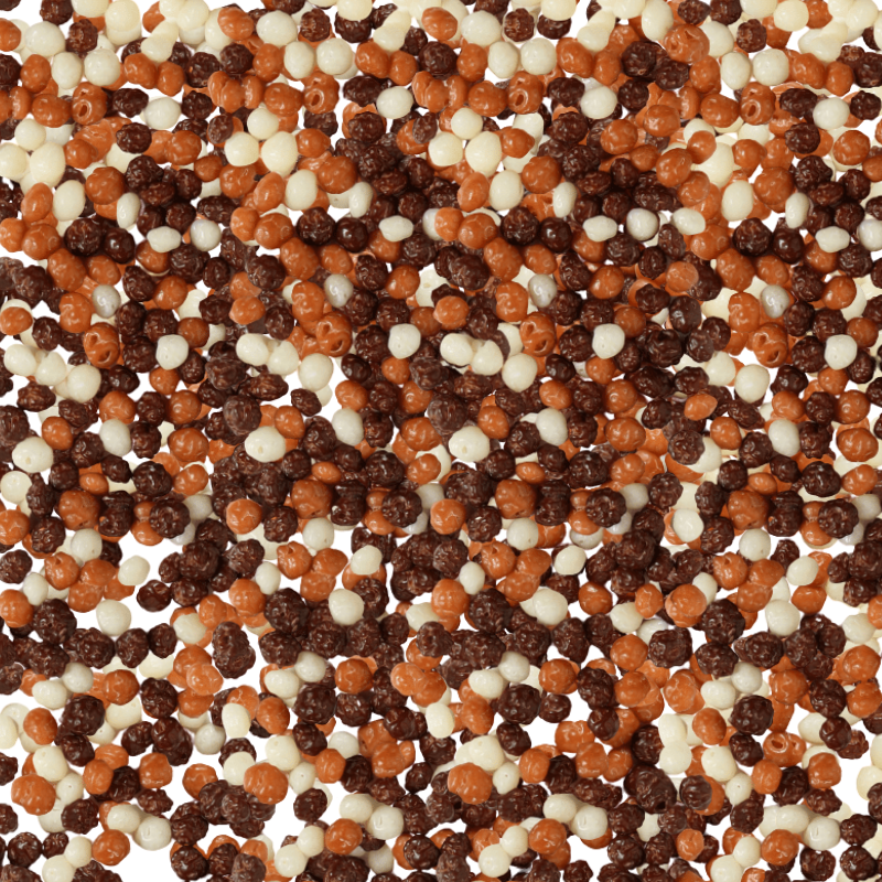 Drobne kuleczki w trzech rodzajach czekolady do dekoracji cukierniczych. Chrupiące wnętrze na bazie mąki ryżowej otoczone białą czekoladą, mleczną czekoladą i ciemną czekoladą. Dodane do kremów, musów lub lodów, nadają im chrupiącą teksturę z czekoladowym akcentem. Czekoladowa otoczka dodatkowo chroni chrupiące wnętrze przed rozmiękaniem, dzięki czemu pozostają cały czas chrupiące. Posypka dekoracyjna z charakterystycznym efektem chrupania.