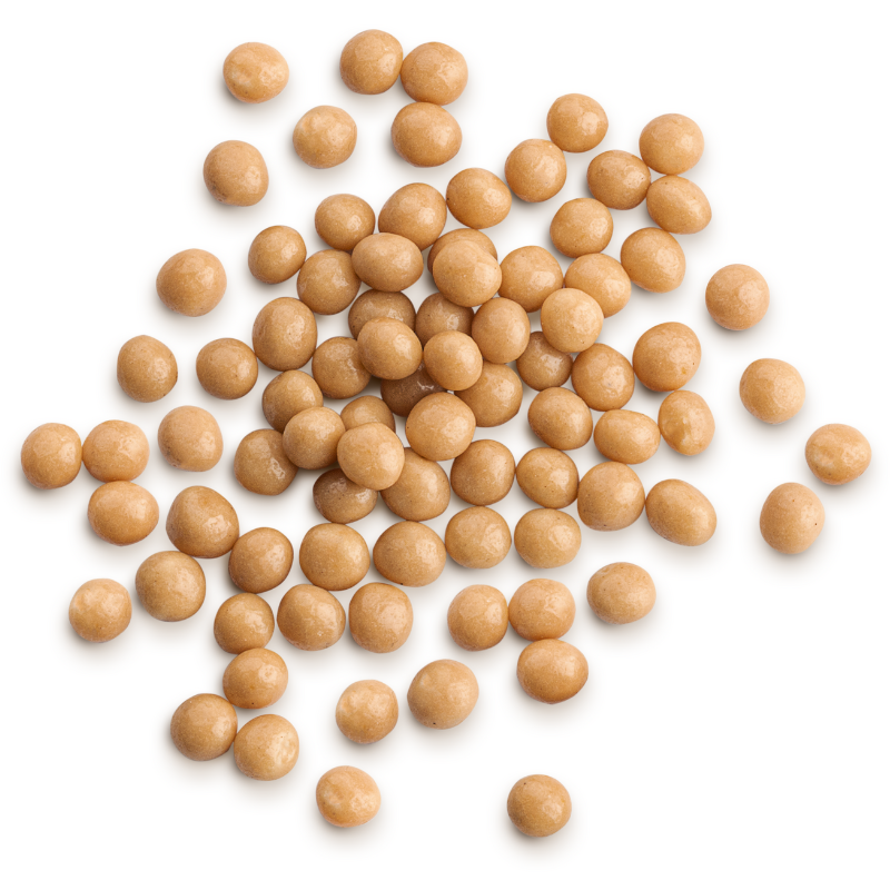 Jaspis to chrupiące kuleczki ryżowe w polewie o smaku słonego karmelu! Chrupiące wnętrze na bazie mąki ryżowej otoczone czekoladą karmelową. Dodane do kremów, musów lub lodów, nadają im chrupiącą teksturę z czekoladowym akcentem. Karmelowa otoczka dodatkowo chroni chrupiące wnętrze przed rozmiękaniem, dzięki czemu pozostają cały czas chrupiące.