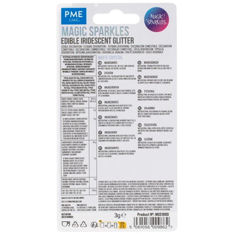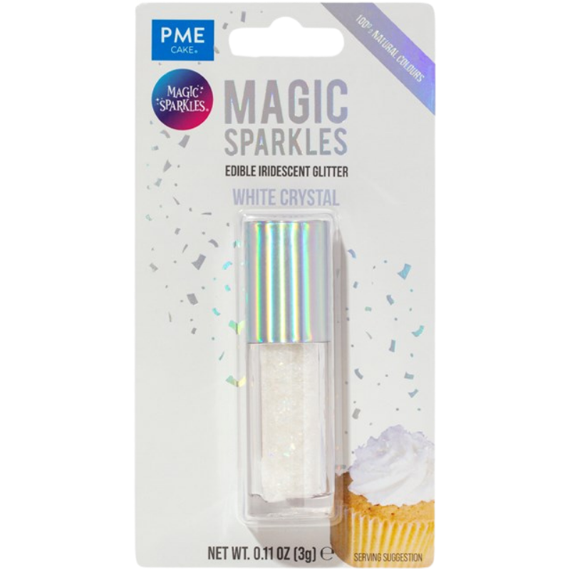 Poczuj słodki luksus dodając elegancji i połysku słodkim kreacjom. Seria opalizujących brokatów do dekoracji spożywczych oferuje niezrównaną elegancję, przekształcając wypieki w prawdziwe klejnoty. Magic Sparkles, to dekoracyjny brokat spożywczy w postaci nieregularnych drobinek z opalizującym efektem. Błyszczące posypki doskonale pasują do klasycznych wyrobów cukierniczych nadając im szyku i wyjątkowej elegancji. Posypki pozwalają uzyskać charakterystyczny mieniący się efekt. Wykorzystywane są przede wszystkim do ozdabiania czekoladek, ciasteczek, babeczek, tortów, deserów i wypieków. Najlepszy i najtrwalszy efekt uzyskuje się stosując posypki do dekorowania wyrobów o niskiej zawartości wody. Posypki umieszczone są w eleganckich słoiczkach ze srebrną nakrętką, dzięki czemu pięknie prezentują się jeszcze przed umieszczeniem ich na dekorowanych wyrobach.