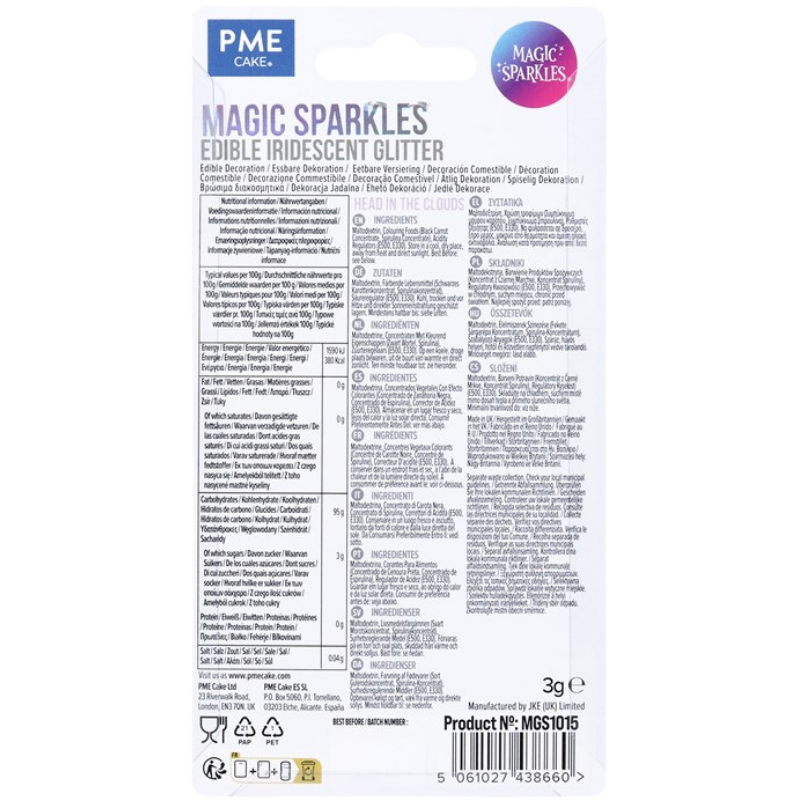 Poczuj słodki luksus dodając elegancji i połysku słodkim kreacjom. Seria opalizujących brokatów do dekoracji spożywczych oferuje niezrównaną elegancję, przekształcając wypieki w prawdziwe klejnoty. Magic Sparkles, to dekoracyjny brokat spożywczy w postaci nieregularnych drobinek z opalizującym efektem. Błyszczące posypki doskonale pasują do klasycznych wyrobów cukierniczych nadając im szyku i wyjątkowej elegancji. Posypki pozwalają uzyskać charakterystyczny mieniący się efekt. Wykorzystywane są przede wszystkim do ozdabiania czekoladek, ciasteczek, babeczek, tortów, deserów i wypieków. Najlepszy i najtrwalszy efekt uzyskuje się stosując posypki do dekorowania wyrobów o niskiej zawartości wody. Posypki umieszczone są w eleganckich słoiczkach ze srebrną nakrętką, dzięki czemu pięknie prezentują się jeszcze przed umieszczeniem ich na dekorowanych wyrobach.