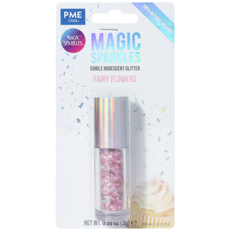 Poczuj słodki luksus dodając elegancji i połysku słodkim kreacjom. Seria opalizujących brokatów do dekoracji spożywczych oferuje niezrównaną elegancję, przekształcając wypieki w prawdziwe klejnoty. Magic Sparkles, to dekoracyjny brokat spożywczy w postaci nieregularnych drobinek z opalizującym efektem. Błyszczące posypki doskonale pasują do klasycznych wyrobów cukierniczych nadając im szyku i wyjątkowej elegancji. Posypki pozwalają uzyskać charakterystyczny mieniący się efekt. Wykorzystywane są przede wszystkim do ozdabiania czekoladek, ciasteczek, babeczek, tortów, deserów i wypieków. Najlepszy i najtrwalszy efekt uzyskuje się stosując posypki do dekorowania wyrobów o niskiej zawartości wody. Posypki umieszczone są w eleganckich słoiczkach ze srebrną nakrętką, dzięki czemu pięknie prezentują się jeszcze przed umieszczeniem ich na dekorowanych wyrobach.