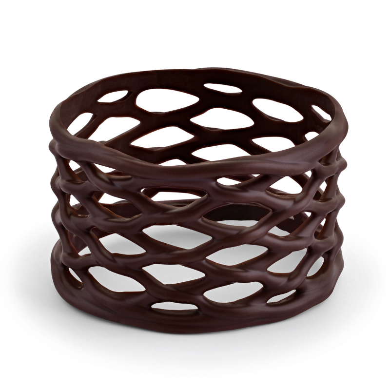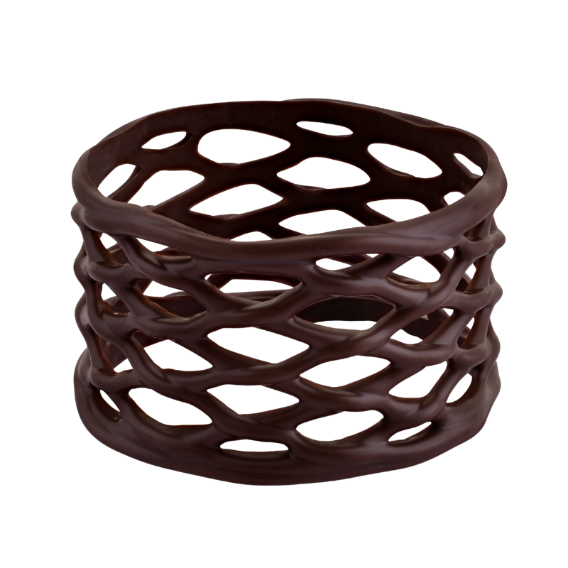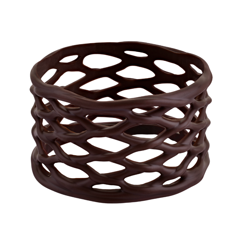 Opis: średniej wielkości koszyczki wykonane z ciemnej czekolady do kreatywnych dekoracji cukierniczych.