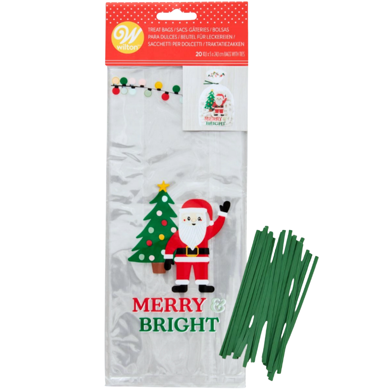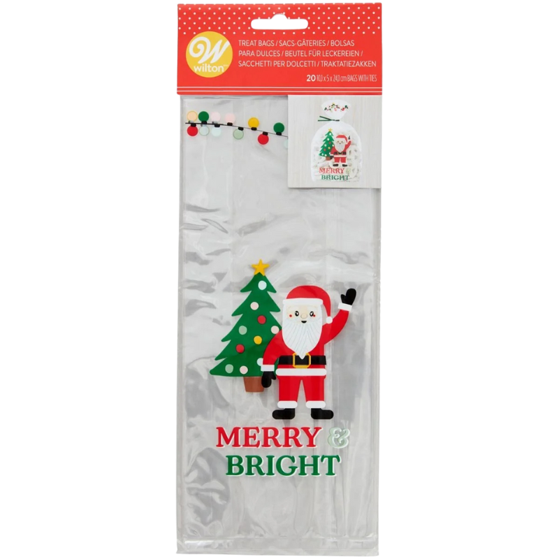 op. 20 szt. Celofanowe woreczki do pakowania pierniczków - świąteczny wzór z życzeniami - dł. 241 x szer. 101 mm - Wilton