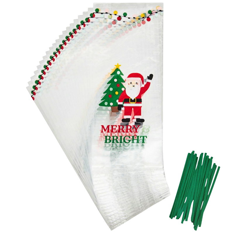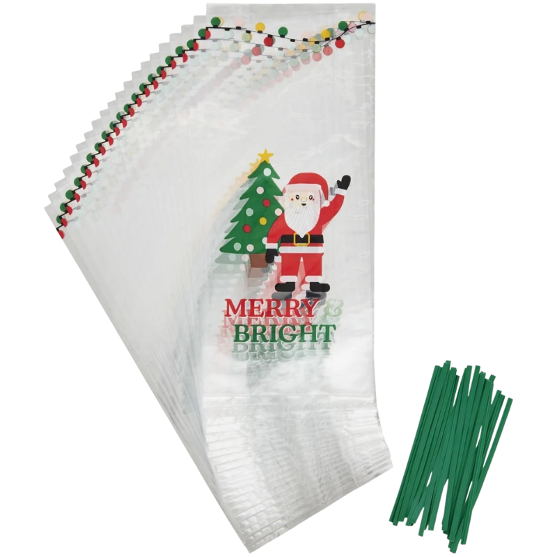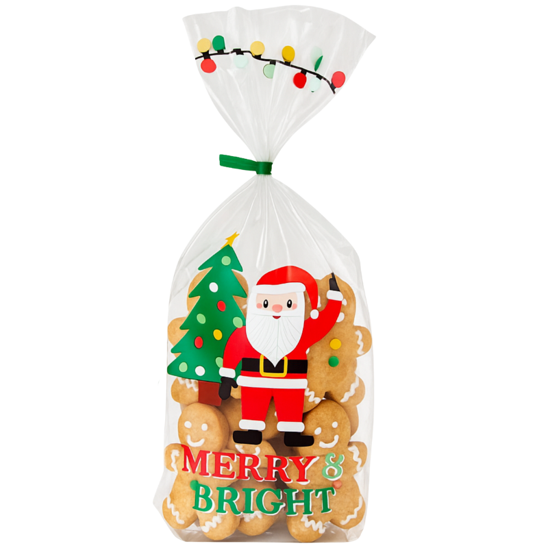 Ozdobne i praktyczne woreczki prezentowe do pakowania domowych ciasteczek i pierniczków. Celofanowe woreczki z dekoracyjnym nadrukiem o tematyce związanej ze Świętami Bożego Narodzenia. Zestaw woreczków wraz z drucikami do wiązania.