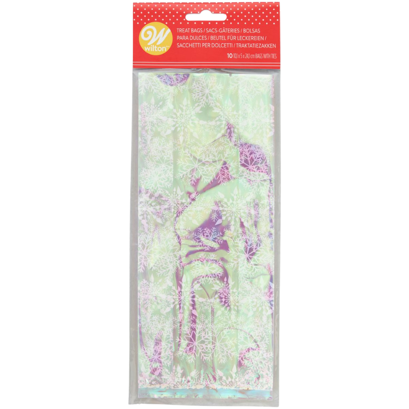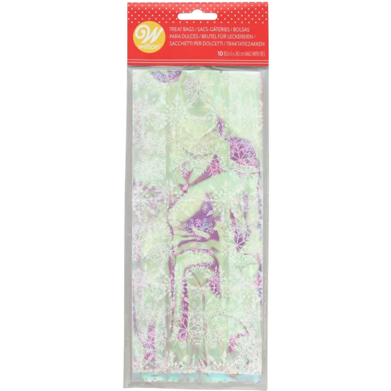 op. 20 szt. Celofanowe woreczki do pakowania pierniczków - opalizujące śnieżynki - dł. 241 x szer. 101 mm - Wilton