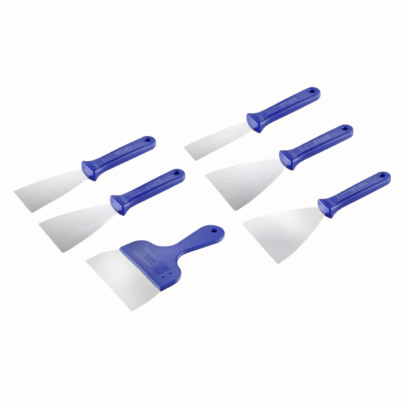 Stalowa szpachla cukiernicza z niebieskim uchwytem z tworzywa - dł. 24.5 x szer. 10 cm - nr. kat. 68687 Thermohauser