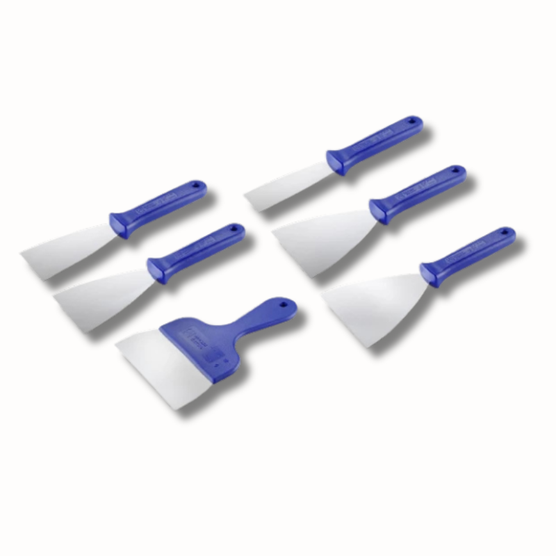 Solidnie wykonana szpachelka cukiernicza z wygodnym uchwytem. Szpachla do temperowania czekolady. Doskonała do porcjowania i krojenia ciasta, siekania składników oraz wygładzania mas cukierniczych. Wykonana z odpornej stali nierdzewnej przeznaczonej do kontaktu z żywnością. Wygodny uchwyt z odpornego tworzywa w kolorze niebieskim.