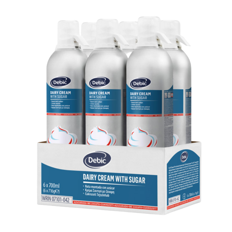 Gotowa do użycia bita śmietana w sprayu z dodatkiem cukru. Profesjonalny produkt, który gwarantuje doskonały smak, konsystencję oraz niezawodność podczas użytkowania. Dzięki innowacyjnej technologii zastosowanej w butelce pod ciśnieniem, opakowanie pozwala na perfekcyjne dekorowanie przy każdym użyciu. Śmietanka ma idealną konsystencję - odpowiednio gęstą, a zarazem puszystą oraz wykazuje wyjątkową trwałość. Delikatnie słodki i śmietankowy smak doskonale sprawdzi się do różnego rodzaju kreacji (deserów, wypieków, napojów, lodów itp.). Opakowanie jest niezwykle wygodne i łatwe w użyciu, a także zapewnia bezpieczne przechowywanie.