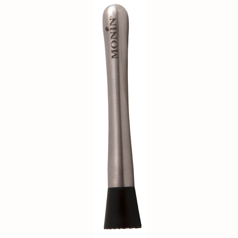 Stalowy Muddler z logo marki Monin. Profesjonalny moździerz barmański. Służy do rozgniatania owoców, ucierania świeżych ziół, przypraw i cukru bezpośrednio w shakerze lub szklance. Podstawowe i niezbędne wyposażenie każdego profesjonalnego i amatorskiego baru.