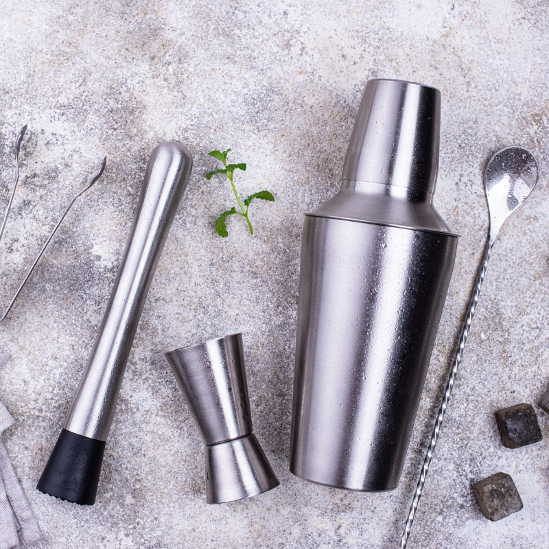 Dwustronna miarka barmańska wykonana ze stali nierdzewnej. Służy do precyzyjnego odmierzani alkoholi i płynnych dodatków podczas sporządzania drinków.