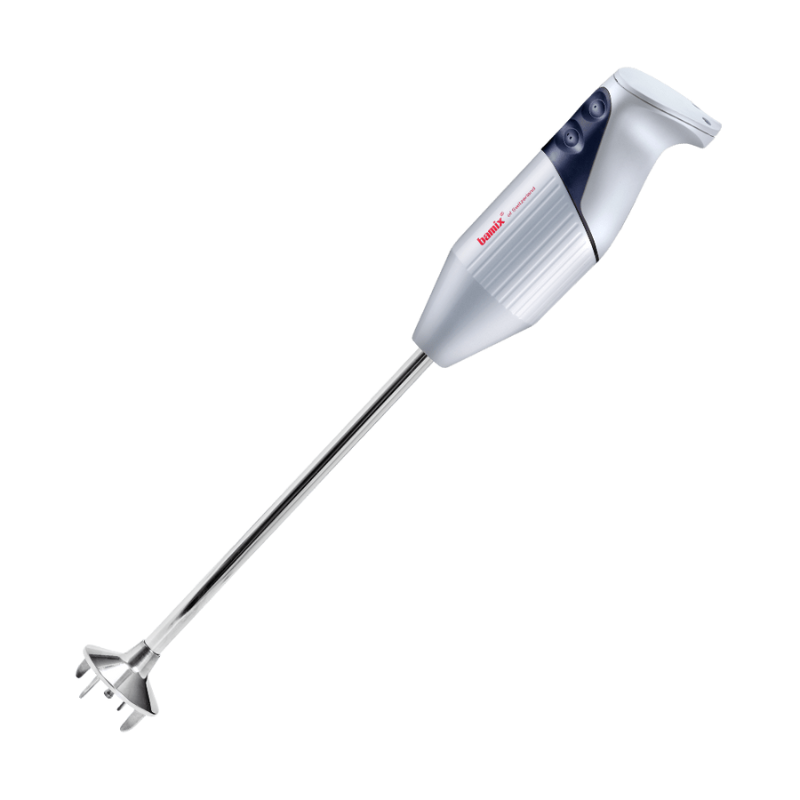 Wszechstronny i prosty w obsłudze profesjonalny blender ręczny z trzema końcówkami wymiennymi i uchwytem do mocowania w zestawie.