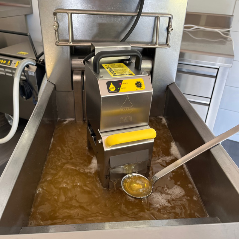 Urządzenie oczyszcza olej do smażenia, zapewniając proste i higieniczne rozwiązanie filtracyjne dla każdej profesjonalnej kuchni. Filtruje mikrocząsteczki do 5 µm z oleju lub tłuszczu - oczyszcza tłuszcz wydłużając jego żywotność (przydatność technologiczną). Pozwala zachować optymalną jakość oleju, a tym samym smażonych w nim potraw. Specjalna konstrukcja urządzenia pozwala na filtrowanie gorącego oleju - o maksymalnej temperaturze 200°C - z zachowaniem maksymalnego bezpieczeństwa pracy. Olej po przefiltrowaniu nadaje się do natychmiastowego, ponownego użycia. Dodatkowo - zintegrowane oprogramowanie (VITOconnect) - umożliwia pełną dokumentację użytkowania urządzenia.