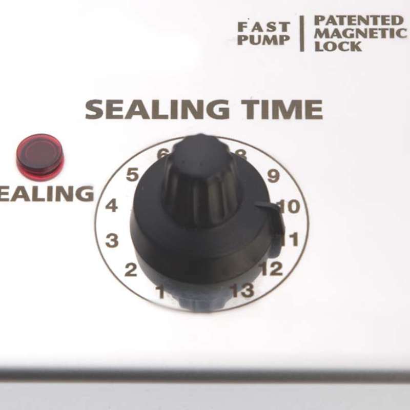 Regulacja zgrzewania i uszczelnienia: dostępnych jest 13 poziomów zgrzewania, w zależności od rodzaju i grubości torby oraz żywności, która ma być pakowana. Podczas intensywnego użytkowania czas zgrzewania można skrócić, aby uniknąć przypalenia torby i zmniejszyć zużycie energii