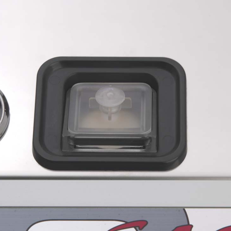 Profesjonalny miernik próżni (wakuometr): maszyna jest wyposażona w profesjonalny miernik próżni z podwójną skalą pomiaru próżni w Hg i Bar. Podczas cyklu pakowania operator może dokładnie monitorować stopień próżni w torbach i pojemnikach.