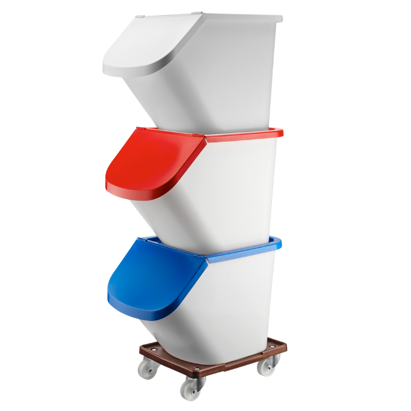 Idealnie dopasowana pokrywa, umożliwiająca otwieranie i użytkowanie pojemników sztaplowanych.