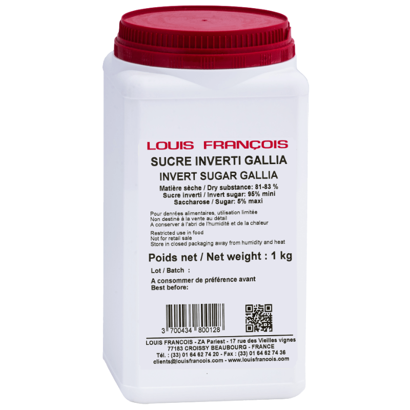 Cukier inwertowany Gallia to mieszanina cukrów prostych - glukozy i fruktozy - uzyskiwana w procesie hydrolizy sacharozy (cukru buraczanego). Proces rozkładu sacharozy na cukry proste prowadzony jest w obecności wody, kwasu cytrynowego oraz enzymu inwertazy. Cukier inwertowany wykazuje silne właściwości higroskopijne, dzięki czemu ogranicza krystalizację cukru w produktach. Pozwala utrzymać wilgoć w produktach ograniczając tym samych wysychanie produktów. Dozowanie cukru inwertowanego jest zróżnicowane i zależy od jego zastosowania. Zwykle stosuje się dodatek w wysokości 3-10%.