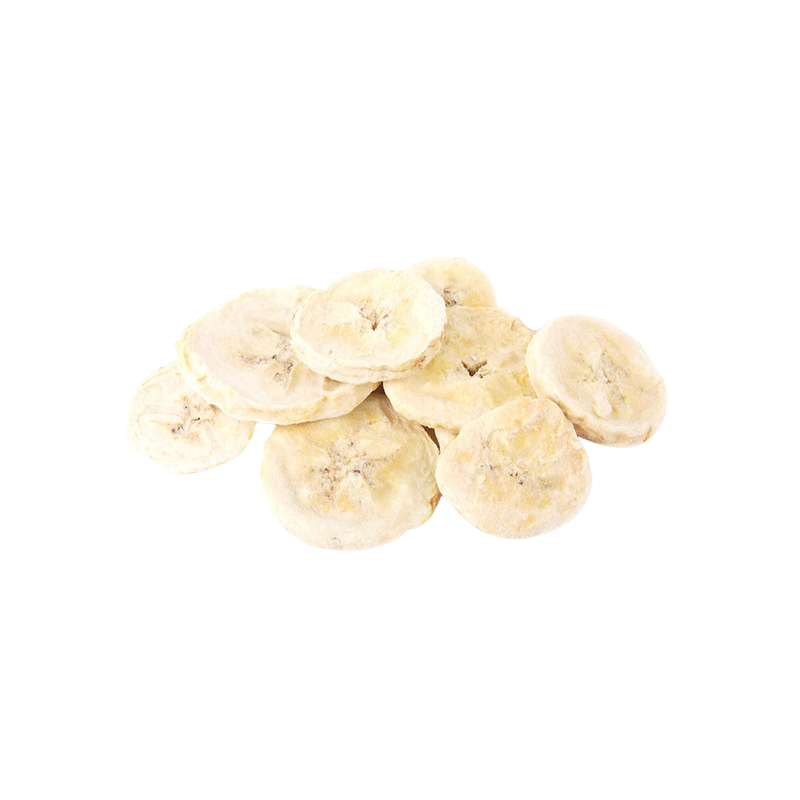 Chrupiące, pełne smaku aromatu i witamin suszone mrozem plasterki banana - zdrowa przekąska i idealny dodatek do posiłków, wypieków i deserów. Doskonale sprawdzą się również jako dodatek smakowy i dekoracyjny przy produkcji pralin i tabliczek czekolady.
