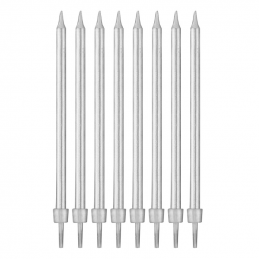 op. 2 szt. Urodzinowe race iskier - brokatowe fontanny na tort dł. 12 cm - srebrne fontanny z podstawkami - GoDan