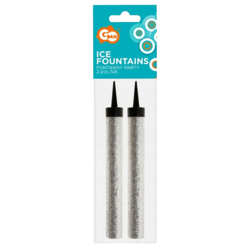 Fontanna iskier zapewnia spektakularny efekt w najważniejszym momencie imprezy! Idealne uzupełnienie dekoracji tortu na każdą okazję. Zestaw 2 brokatowych fontann iskier w kolorze srebrnym. Race z podstawkami o długości 12 cm i średnicy 1 cm - iskrzący efekt trwający 45 sekund.