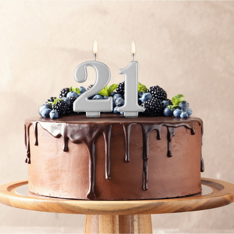 Metaliczne świeczki urodzinowe - srebrne cyferki.