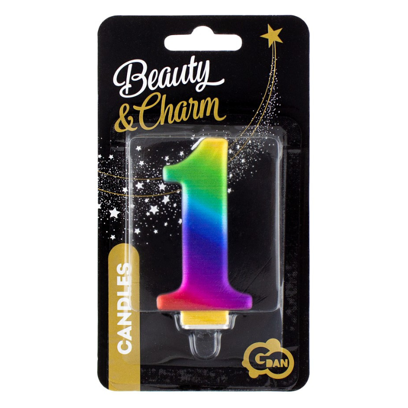 Cyfra 1 - świeczka urodzinowa z metalicznym połyskiem - tęczowa świeczka Night Sky - SF-NSM1 GoDan