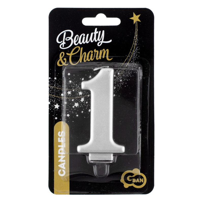 Cyfra 1 - srebrna świeczka urodzinowa z metalicznym połyskiem - dł. 8 cm - Beauty & Charm - PF-SCS1 GoDan