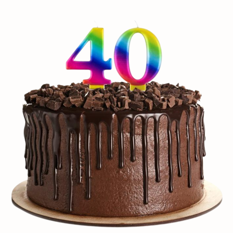Tęczowe świeczki urodzinowe cyfry z metalicznym połyskiem. Kolorowe i błyszczące świeczki na tort urodzinowy. Tęczowe świeczki cyferki do tortu. Idealne uzupełnienie dekoracji tęczowego tortu i tortu w kształcie jednorożca.