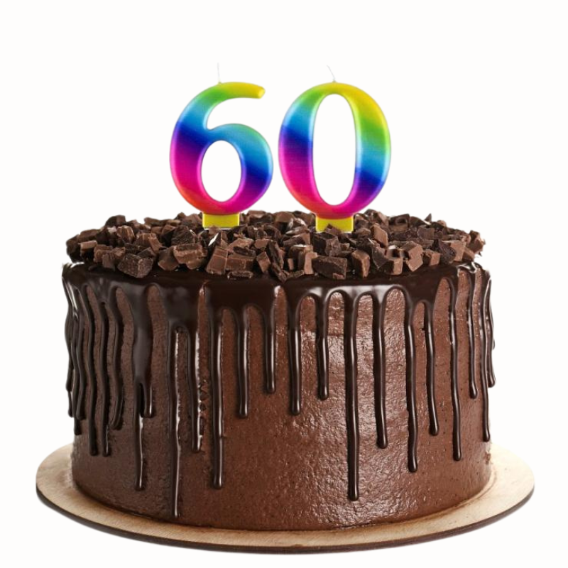 Tęczowe świeczki urodzinowe cyfry z metalicznym połyskiem. Kolorowe i błyszczące świeczki na tort urodzinowy. Tęczowe świeczki cyferki do tortu. Idealne uzupełnienie dekoracji tęczowego tortu i tortu w kształcie jednorożca.