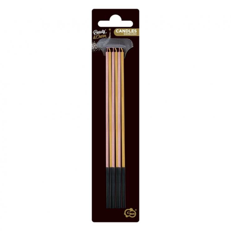 Metaliczne świeczki urodzinowe - złote i różowe - zestaw 6 świeczek o dł. 17 cm - 7C-SMRZ GoDan