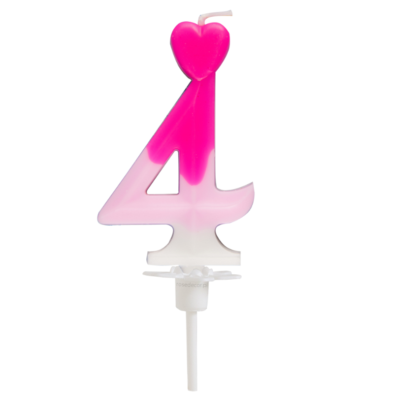 Seria dwukolorowych, cieniowanych świeczek na tort w kształcie cyfr. Doskonałe wykończenie tortu idealna na każdą okazję. Świeczki posiadają pasy w kolorze białym i różowym.