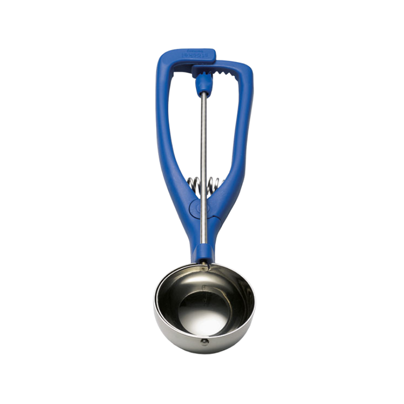 STÖCKEL MODEL K - to seria profesjonalnych łyżek do nakładania lodów (gałkownic) dostępnych w 23 rozmiarach. Wykonane zostały ze stali nierdzewnej 18/10 (łyżka) oraz wysokiej jakości tworzywa (uchwyt). Plastikowy uchwyt ma charakterystyczny dla serii intensywny niebieski kolor i gwarantuje pewny chwyt (posiada antypoślizgowe właściwości). Konstrukcja uchwytu zapewnia łatwość użytkowania. Gałkownice charakteryzują się wyjątkową trwałością i niezawodnością podczas pracy.