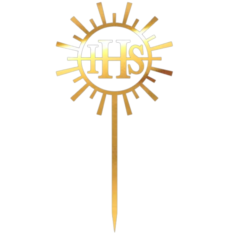 Złoty lustrzany Topper - IHS - akrylowa dekoracja na tort komunijny - wys. 19 x szer. 9.5 cm - nr. kat. 064LZ