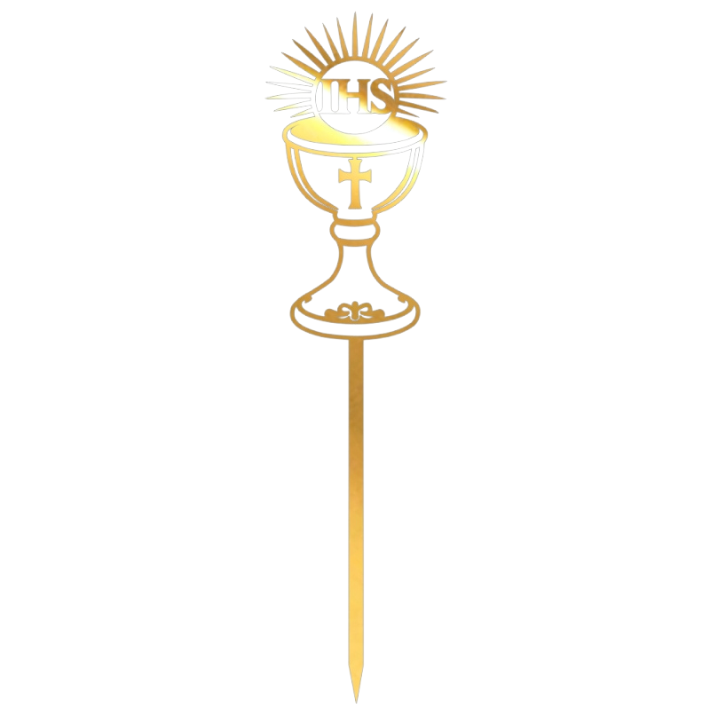 Złoty lustrzany Topper - kielich - akrylowa dekoracja na tort komunijny - wys. 19 x szer. 5 cm - nr. kat. 288LZ