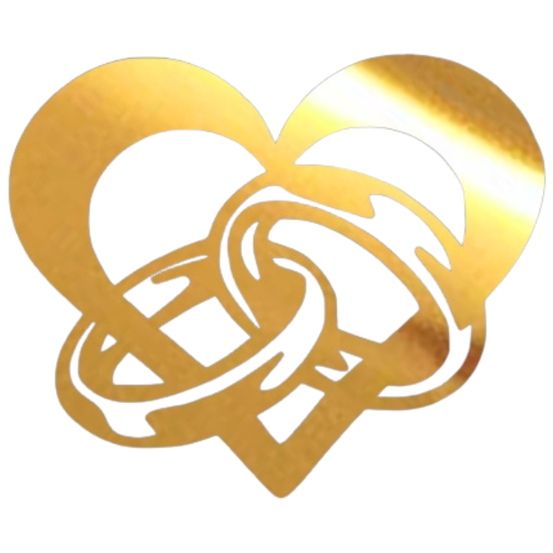 Złota dekoracja z efektem lustra. Akrylowa dekoracja, to prosty sposób na efektowną dekorację tortu weselnego. Artykuł dekoracyjny przeznaczony do kontaktu z żywnością.