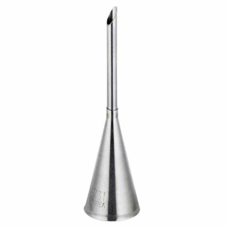 Opis: tylka do nadziewania pączków z długą, skośnie uciętą końcówką pozwalającą na łatwe wkucie bez naruszenia struktury pączków; służy do nadziewania pączków, ptysi oraz innych wypieków; wykonana ze stali nierdzewnej, kwasoodpornej; można myć w zmywarce; wykonana z jednego kawałka stali nierdzewnej, bez szwów i łączeń; można myć w zmywarce.