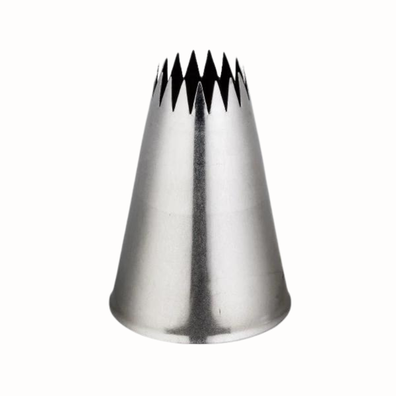 Poglądowy wzór jaki pozwala uzyskać końcówka do dekoracji w kształcie Francuskiej Gwiazdy, szczegóły wzoru zależne są od średnicy oraz ilości ząbków: