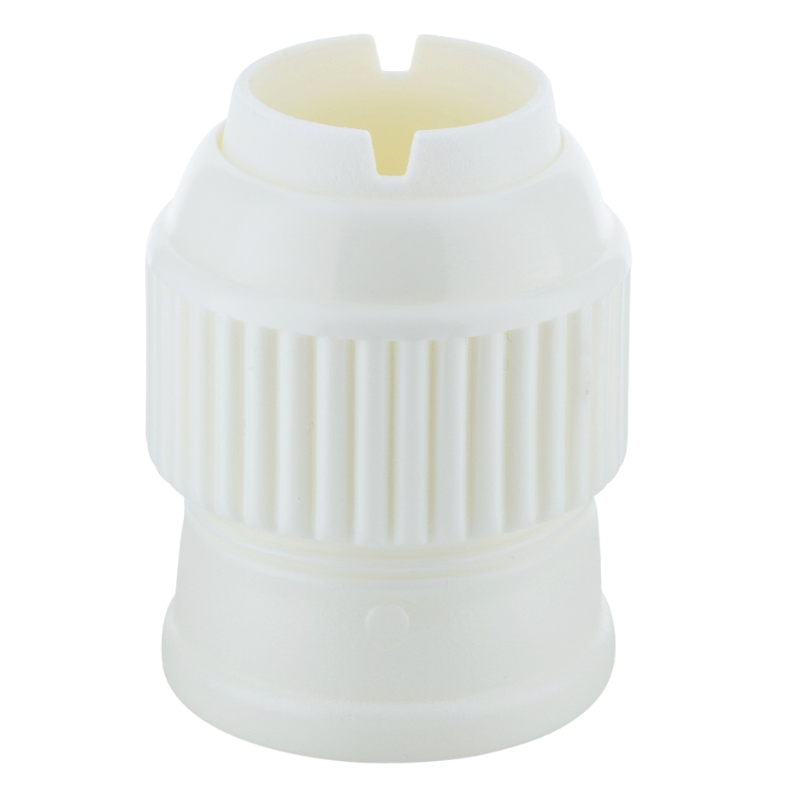 Standardowy adapter do tylek cukierniczych o średnicy dolnej 27 milimetrów. Przeznaczony do końcówek w rozmiarze XXL. Pozwala na łatwe wymienianie końcówek dekoracyjnych w workach cukierniczych.