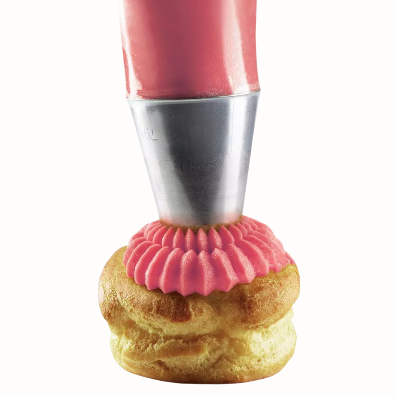 Stalowa końcówka do dekoracji. Idealna do klasycznych francuskich Religieuse. Tylka do tworzenia dekoracji cukierniczych z kremu maślanego oraz innych mas o większej gęstości.