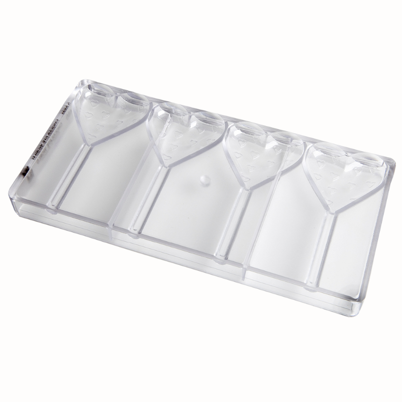 Kolekcja form do tworzenia walentynkowych lizaków z czekolady. Dopracowane klasyczne i nowoczesne wzory przeznaczone do ręcznego i maszynowego formowania. Wykonane z wytrzymałego i odpornego poliwęglanu o półtransparentnej barwie.