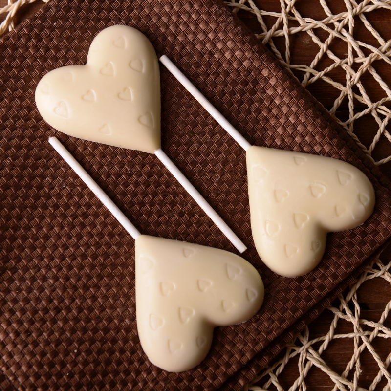 Seria form do tworzenia dekoracyjnych lizaków z czekolady. Profesjonalna forma wykonana z wytrzymałego i odpornego poliwęglanu. Walentynkowy wzór serce w delikatne paski. Forma pozwala na jednorazowe przygotowanie 10 lizaków o wymiarach dł. 51 mm x szer. 49.5 mm x wys. 9 mm i pojemności 14 gramów.