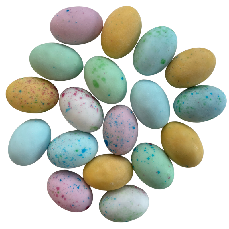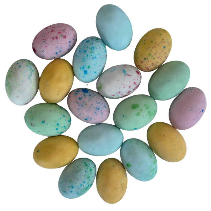 Jajka czekoladowe z chrupiącą powłoką w pastelowych barwach. Idealne do dekoracji wielkanocnych wypieków i deserów oraz jako słodka przekąska na świątecznym stole.