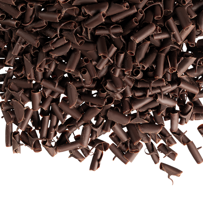Dekoracyjna posypka czekoladowa w formie drobnych wiórków o uniwersalnym zastosowaniu w cukiernictwie.