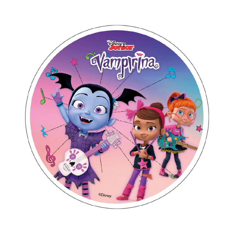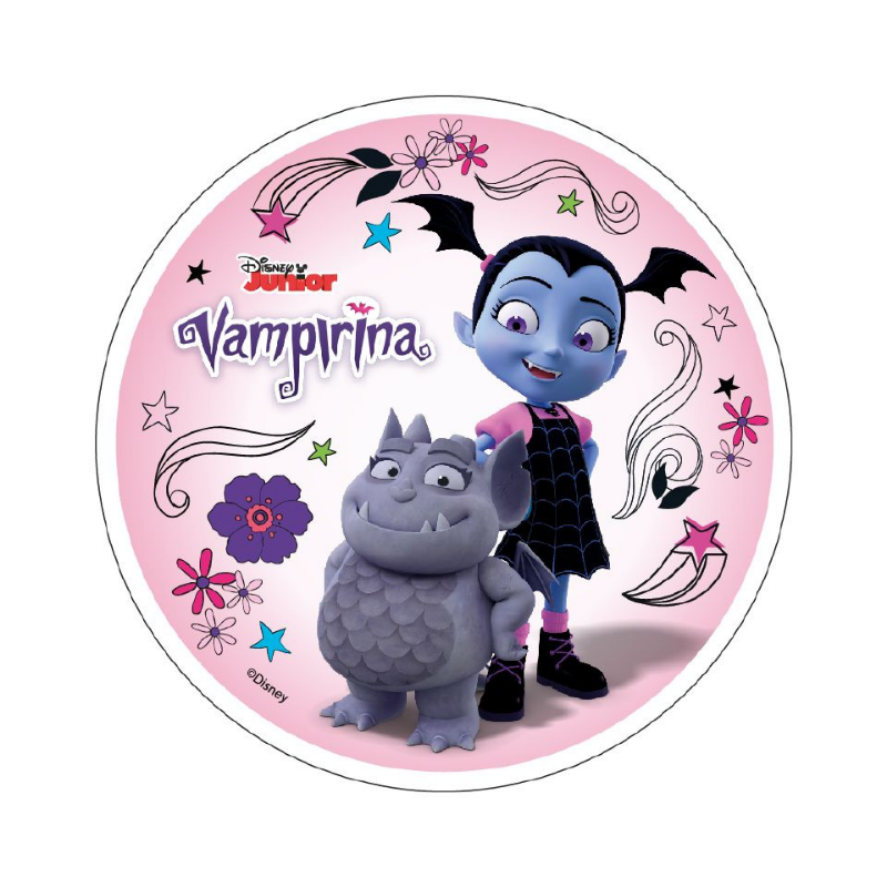 OPŁATEK WAFLOWY VAMPINA 72218 MODECOR okrągły opłatek na tort z bohaterami z bajek ∅ 21 cm